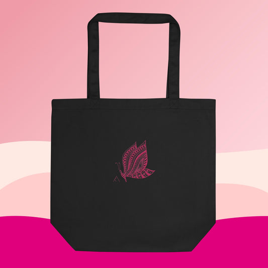 The Butterfly: Embroidered Eco Tote Bag in Pink